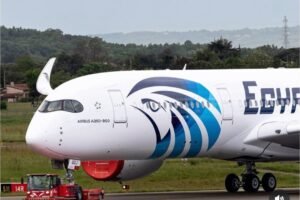 ظهرَت الطائرة الرابعة من طراز Airbus A350-900 الخاصة بشركة EgyptAir في مصنع شركة Airbus بمدينة تولوز الفرنسية، خلال مراحل التجهيز الأخيرة قبل دخولها الخدمة ضمن الأسطول المصري.