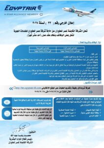 وجاء الإعلان في بيانين رسميين تضمن الأول الوظائف القانونية، بينما شمل الثاني وظائف شركة مصر للطيران للخدمات الجوية.