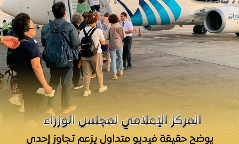 حسم المركز الإعلامي لمجلس الوزراء الجدل المثار حول مقطع فيديو متداول على مواقع التواصل الاجتماعي، يزعم تجاوز إحدى الرحلات الجوية للطاقة الاستيعابية المقررة لعدد الركاب على متن الطائرة، مؤكدًا عدم صحة ما تم تداوله.