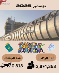 سجّل مطار القاهرة الدولي ارتفاعًا ملحوظًا في معدلات التشغيل وحركة السفر خلال شهر ديسمبر 2025، مقارنة بالفترة نفسها من عام 2024، في مؤشر واضح على التعافي المتسارع والنمو المستدام لقطاع الطيران المدني.