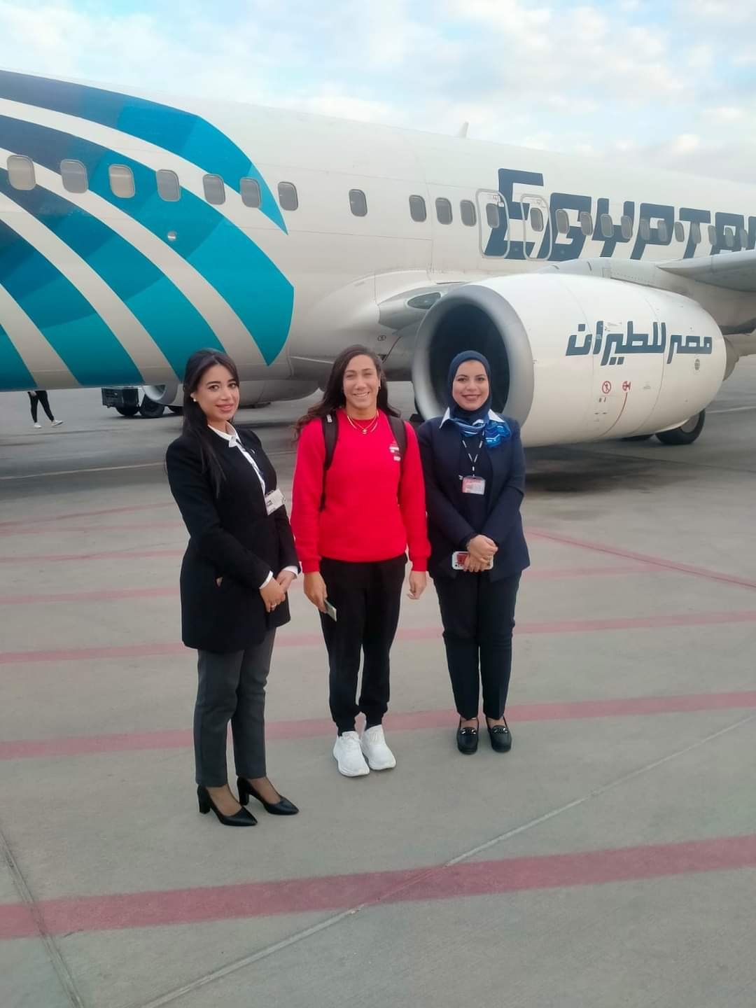 كتبت : ميادة فايق في استقبال حافل بمطار القاهرة الدولي، رحب فريق العلاقات العامة بشركة مصر للطيران بالبطلة الأولمبية فريدة عثمان، نجمة المنتخب الوطني المصري