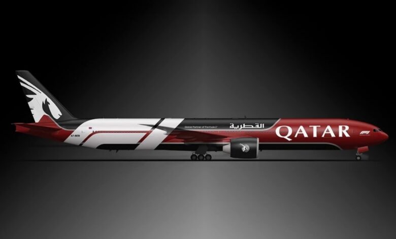 طلاء بطابع السرعة.. الخطوط الجوية القطرية تطلق طائرتها الجديدة احتفاءً بعالم الفورمولا 1