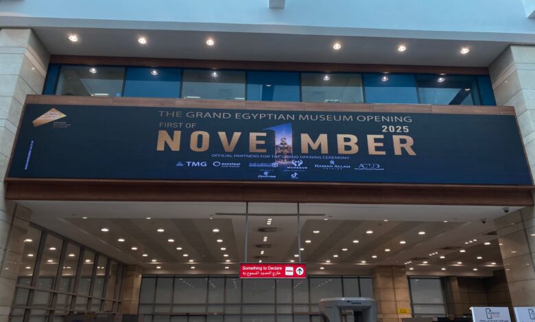بالصور مطار القاهرة الدولي يتزين بلوحات المتحف المصري الكبير استعدادًا لافتتاحه التاريخي غدًا
