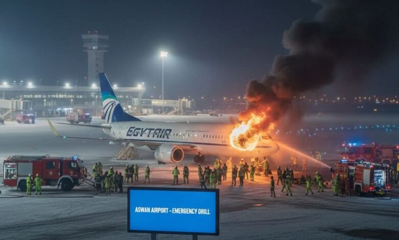 مطار أسوان الدولي يجري تدريبًا عمليًا على حوادث الطيران المحتملة