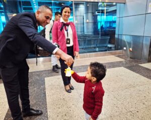 وقام فريق العلاقات العامة والإعلام بالشركة بتنظيم الفعالية والتواجد بصالات السفر والوصول حيث تم توزيع هدايا رمزية على الركاب شملت فوانيس رمضان وميداليات تذكارية تحمل طابع الشهر الفضيل إلى جانب التقاط الصور التذكارية مع المسافرين من مختلف الجنسيات في أجواء عكست روح البهجة والضيافة المصرية الأصيلة.