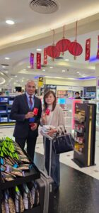 وشهدت منافذ الأسواق الحرة أجواءً احتفالية مبهجة، حيث تم تزيين الفروع بالزينة والرموز الصينية التقليدية التي أضفت طابعًا احتفاليًا مميزًا، إلى جانب تقديم هدايا تذكارية خاصة للعملاء الصينيين، في مبادرة تعكس اهتمام الشركة بأدق التفاصيل وحرصها على ترسيخ مفاهيم الضيافة الراقية داخل جميع مواقعها.
