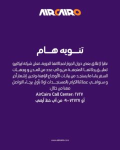 مركز اتصال AirCairo على الرقم: 2727