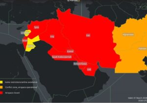 وتشهد المنطقة موجة غير مسبوقة من الإغلاقات الجوية الشاملة والجزئية، حيث تصدرت إيران المشهد بإغلاق مجالها الجوي كلياً، فيما تستمر إسرائيل بإغلاق كامل لأجوائها حتى الساعة 10 صباحاً يوم 3 مارس.