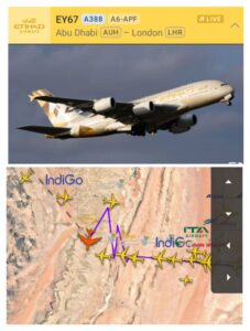 وانطلقت طائرة إيرباص A380، المسجلة برقم A6-APF، على متن الرحلة رقم EY67 من مطار أبوظبي الدولي متجهة إلى مطار لندن هيثرو، في إشارة واضحة إلى عودة الشركة لتسيير رحلاتها تدريجيًا بعد فترة من الاضطرابات.