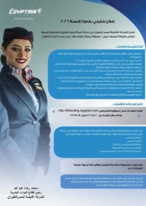 أعلنت مصر للطيران، ممثلة في الشركة القابضة، عن فتح باب التقديم لشغل وظيفة “مضيف جوي / مضيفة جوية” للعمل بنظام التعاقد محدد المدة، في خطوة تستهدف تعزيز كوادر الضيافة الجوية ورفع مستوى الخدمات المقدمة على متن رحلاتها.