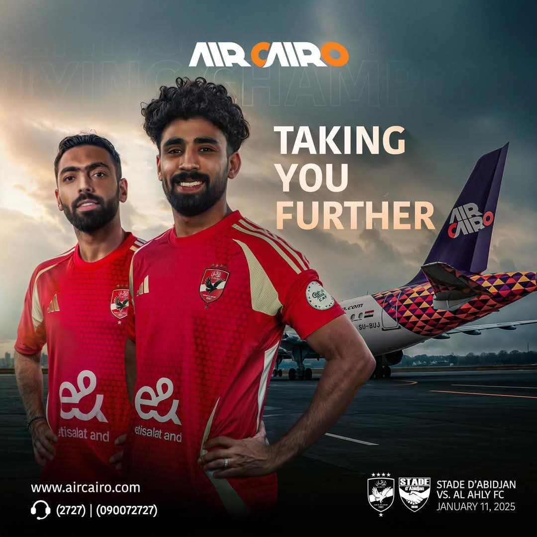 كتبت : ميادة فايق أعلنت شركة إير كايرو أنها الناقل الرسمي للنادي الأهلي في رحلته إلى ساحل العاج، حيث سيواجه فريق ستاد أبيدجان ضمن منافسات