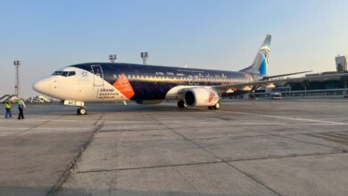 طائرة مصر للطيران المزيّنة بشعار المتحف الكبير تجوب العالم برسالة من أرض الفراعنة